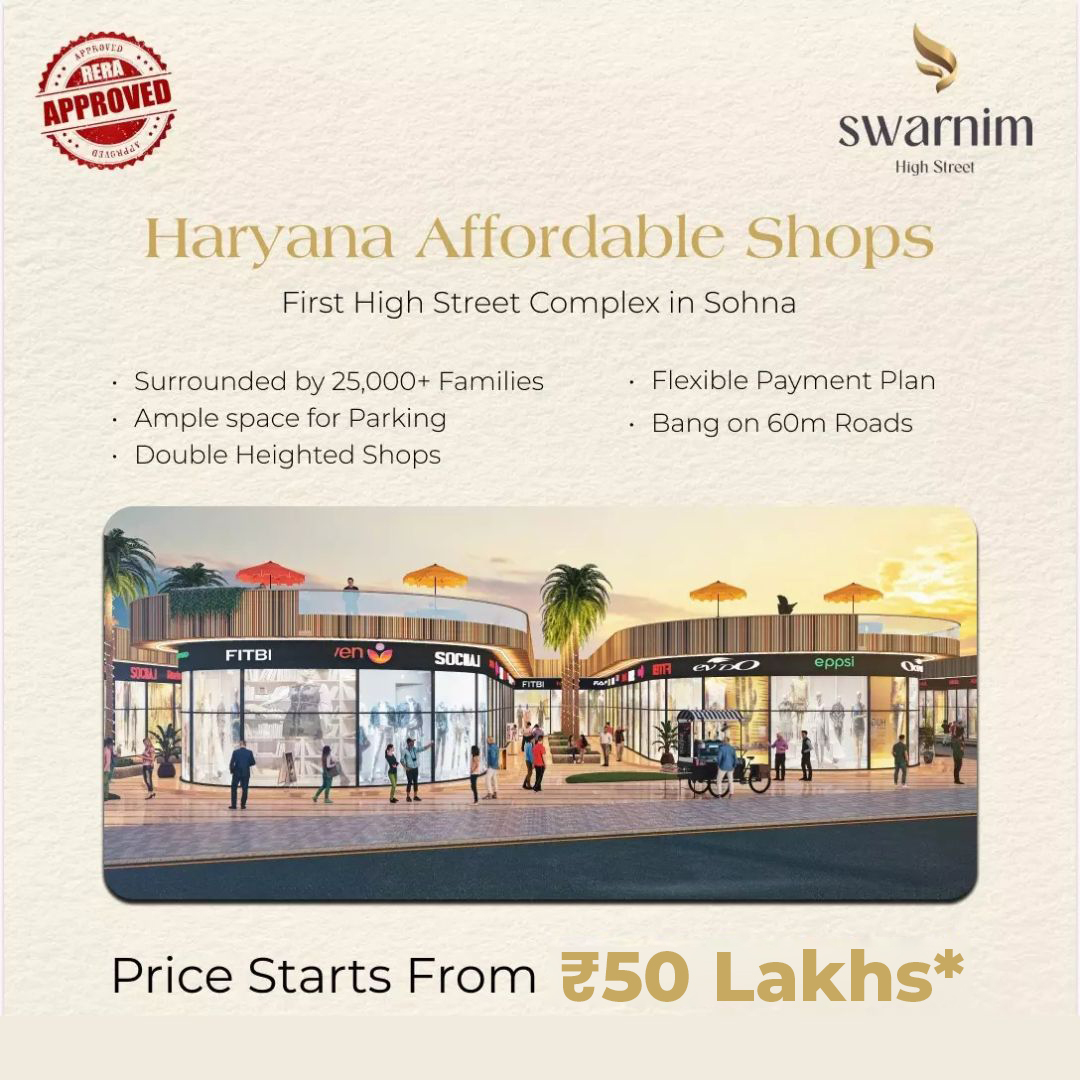 The Haryana Affordable Shop Yojna Project in Sector 35, Sohna, Gurugram, under DDJAY, is a landmark commercial development offering modern, affordable retail spaces at the most strategic location on Sohna Road. This project is designed to provide entrepreneurs, retailers, and investors with premium commercial shops that combine affordability with high growth potential. Situated within a large residential community, the project benefits from an eye catchment area of over 50,000 residents, ensuring consistent footfall and business opportunities.